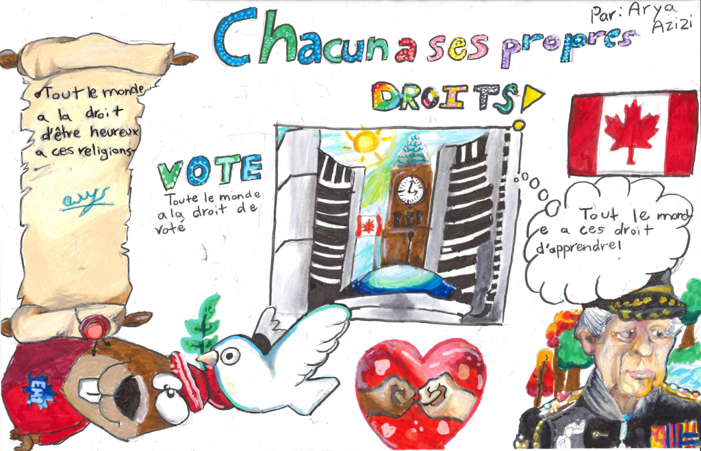 We also want to congratulate all the students who participated and their teachers. Everyone worked very hard and all the posters we received depicted our Charter of Rights and Freedoms in creative and thought provoking ways.
