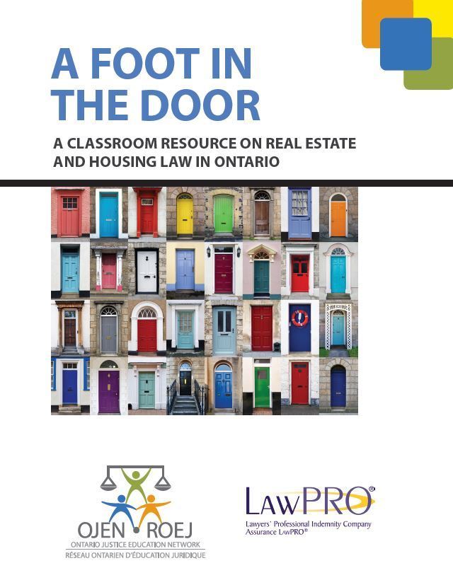 OJEN is pleased to announce a new partnership with the Lawyers Professional Indemnity Company (LAWPRO) to offer in-school presentations with real estate lawyers on the purchase and sale of a house. This session is linked to the A Foot in the Door resource, which is available on the OJEN website. This six-module resource provides an introduction to real estate and housing law in Ontario and includes a variety of interactive activities. The resource and the in-class presentations support the development of financial literacy, an area of increased focus for the current Ontario Ministry of Education.