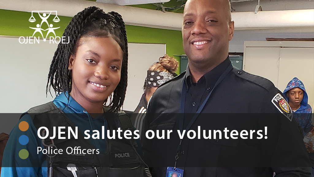 We send appreciation to officers from police services throughout the province. Their participation in programs including Youth Police Dialogues and Navigating Police Encounters foster mutual learning opportunities for both youth and police. Officers, like Cst. Vianney Calixte from the Ottawa Police Service, engage in dialogue, share information and exchange experiences.