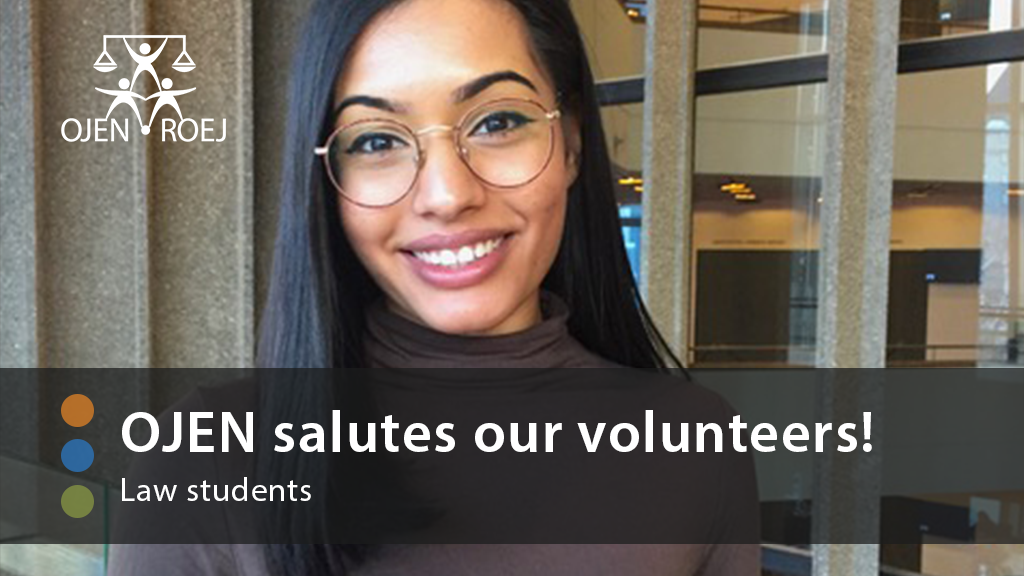 OJEN thanks all the law students who contribute so much to OJEN’s justice education initiatives. Nemee Bedar juggled full-time studies in the University of Ottawa law program with responsibilities as one of our 2021 Justice Education Fellows. She adapted OJEN’s workshop “My Journey to a Career in Law” for online delivery and will have delivered it 3 times before the end of the academic year. Thanks, Nemee and congratulations on your upcoming clerkship at the Superior Court of Justice!