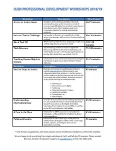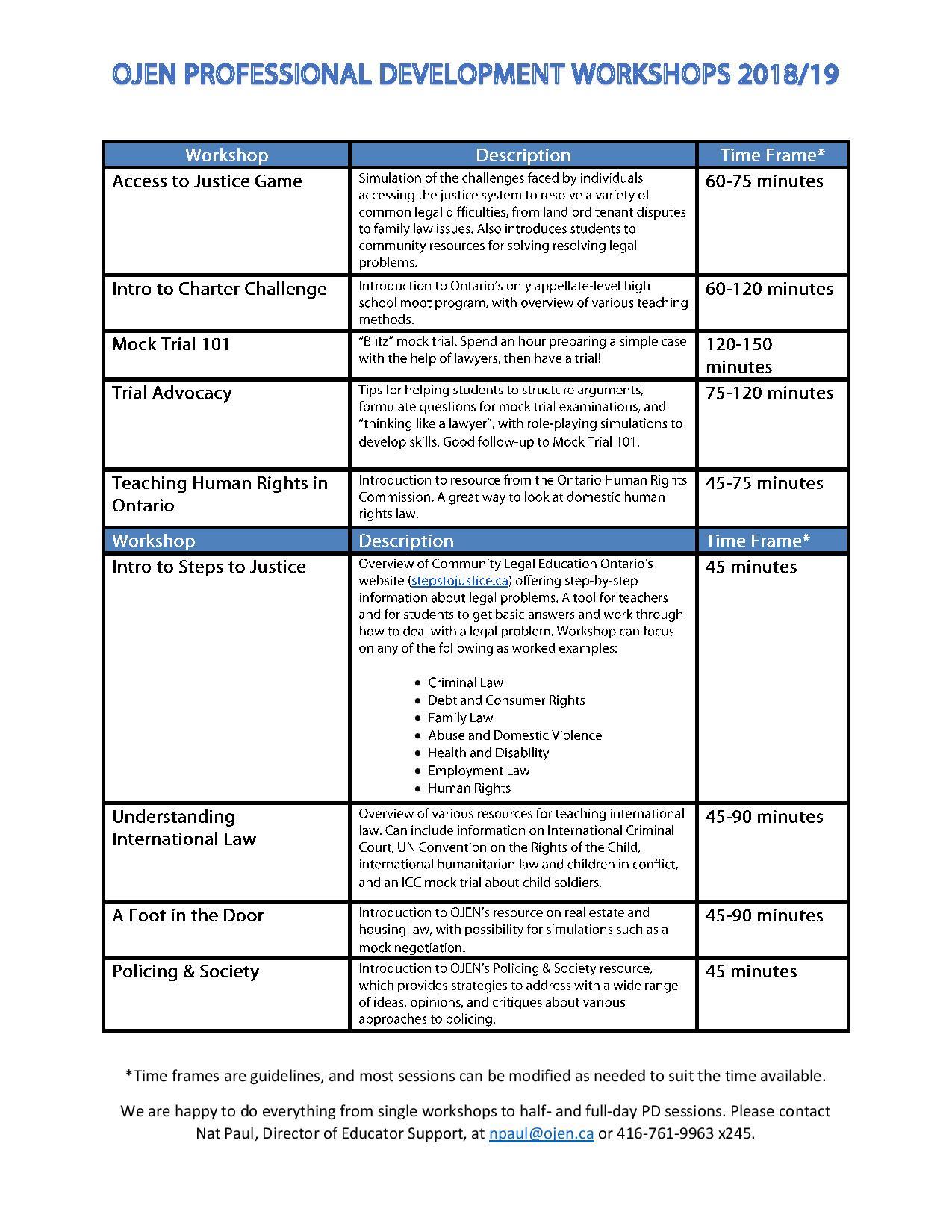 Did you know that OJEN offers free professional development? Teachers, instructional leaders, learning coaches and administrators can contact us to arrange for a wide range of PD offerings. See the attached list of professional development workshops that OJEN is highlighting this school year.