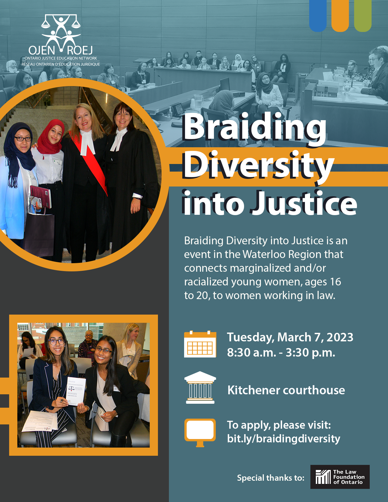 Braiding Diversity into Justice 2023 will take place on Tuesday, March 7, 2023 from 8:30 a.m. – 3:30 p.m.